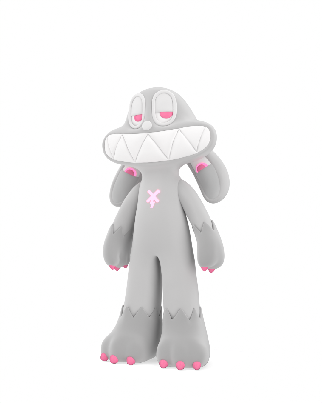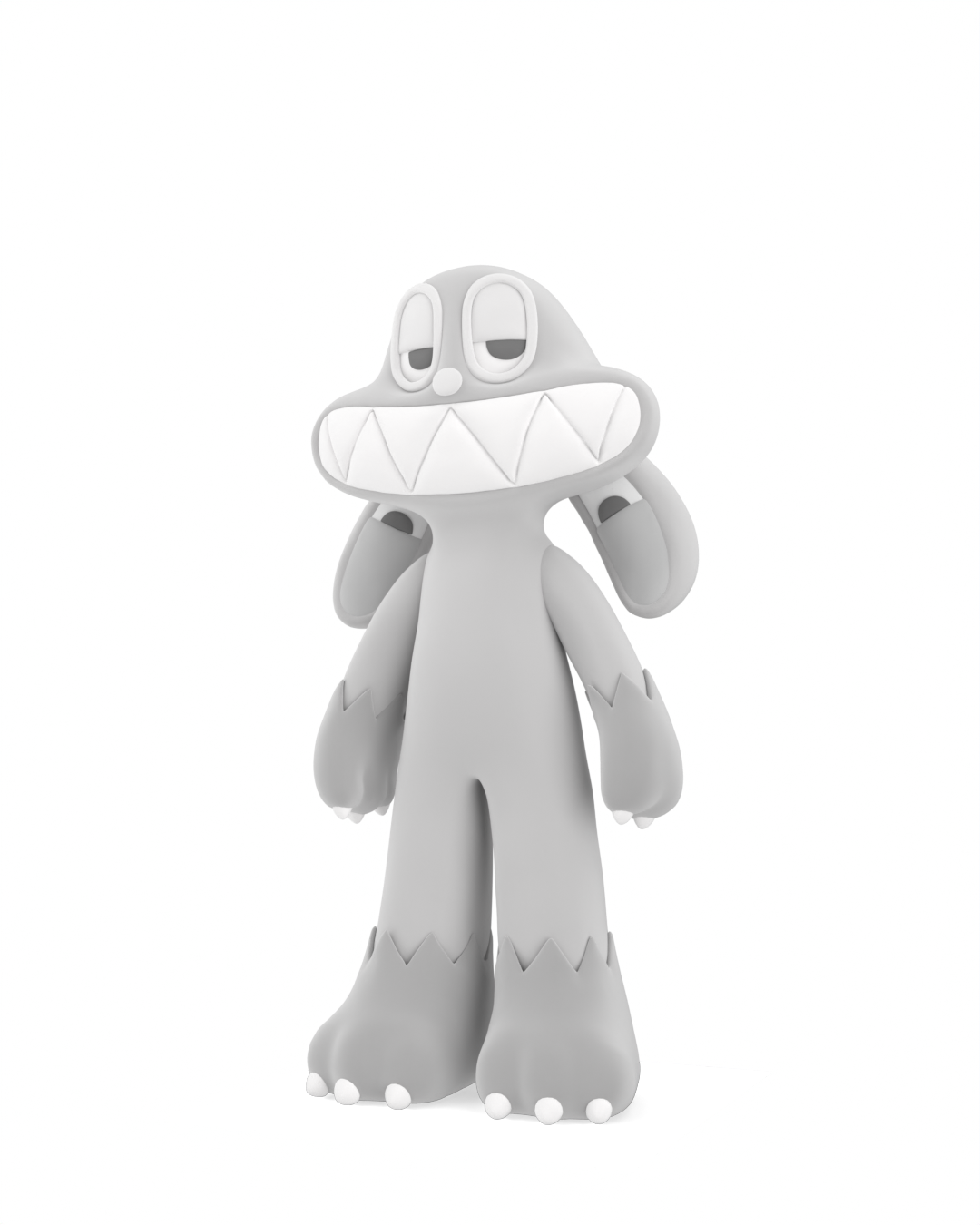 Its intuitive cuteness contrasts with ambiguous expressions, sharp teeth, clawed paws, and the uniquely positioned "Extra Eyes" on both ears, forming an unfamiliar yet balanced visual language.